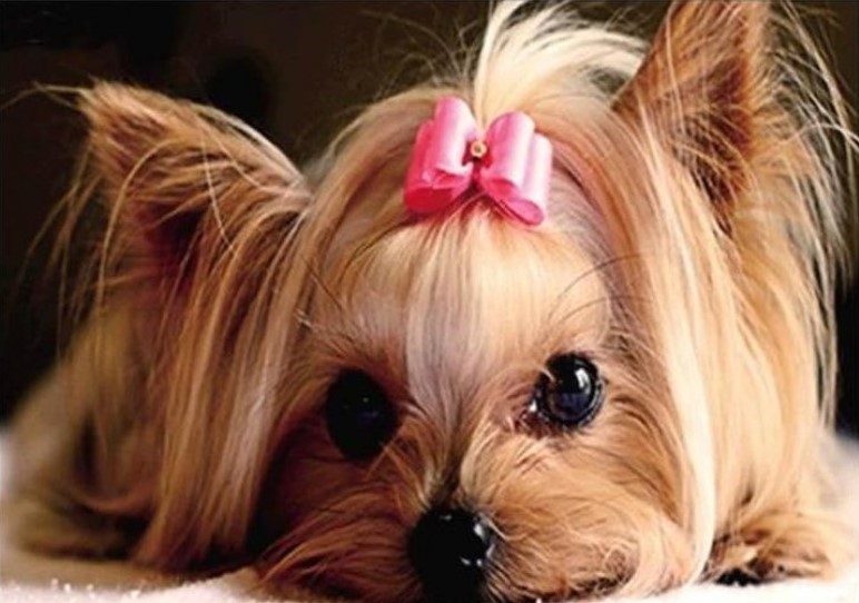 Dog with pink bow